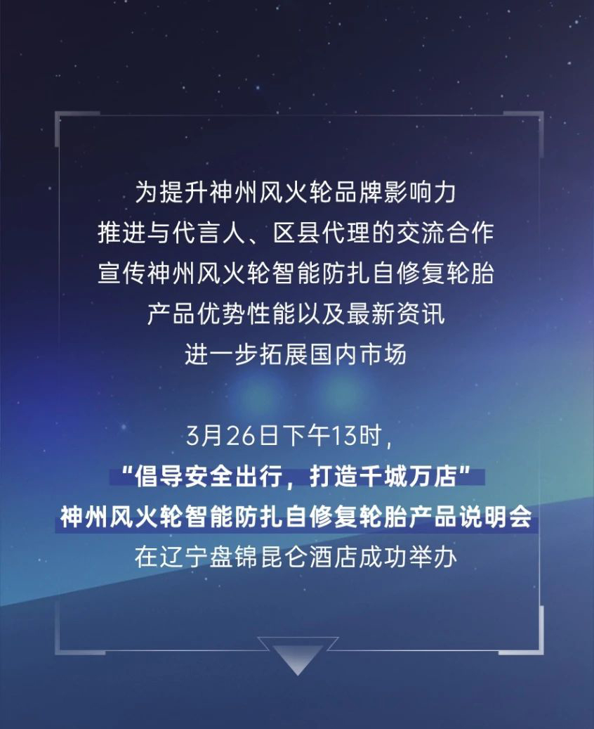 【盤錦站】“倡導(dǎo)安全出行,打造千城萬店”神州風(fēng)火輪智能防扎自修復(fù)輪胎產(chǎn)品說明會(huì)